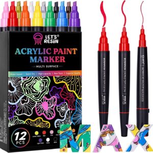 LET'S RESIN 12 Colors Acrylic Paint Markers, 3 Tips Multi-Purpose & High-Capacity Acrylic Paint Pens, Perfect Resin Supplies for Resin Crafts, Rock, Stone, Canvas, Glass, DIY Making Art Supplies