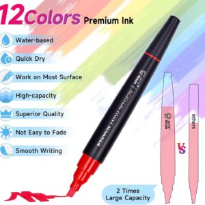 Acrylic Paint Pens Set, 12 Colors Acrylic Markers Kits for 2 to 3mm Painting, Quick Dry Acrylic Paint Markers for Rock Painting Wood Fabric Ceramic Porcelain Scrapbook, with Felt Pen Bag