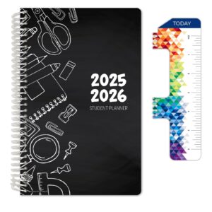 Global Datebooks Dated Middle School or High School Student Planner for Academic Year 2025-2026 Includes Ruler/Bookmark and Planning Stickers (Block Style - 5.5"x8.5" - Doodles)