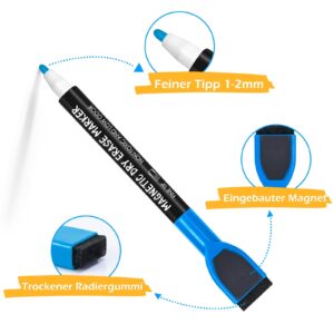 Maxtek Magnetic Dry Erase Markers with Eraser,Fine Tip,Assorted Colors,12 Count,1-2mm Fine Point Whiteboard Marker for Office Supplies,Calendar Boards