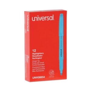 Universal Pocket Clip Highlighter, Chisel Tip, Fluorescent Blue Ink, Dozen -UNV08854