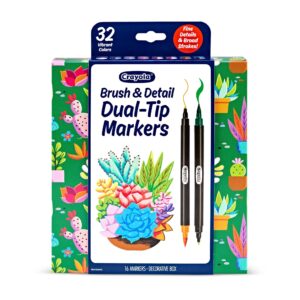 Crayola Brush & Detail Dual Tip Marker Set, 16 Markers, 32 Colors, Adult Coloring Markers, Gifts for Teens & Adults