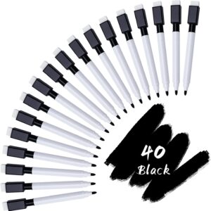 RETON 40PCS Dry Erase Markers with Eraser, Black Fine Tip Point Whiteboard Pens with Magnetic Cap and Eraser for Office Supplies