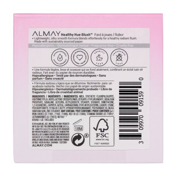 This is lightweight blush for a flush of color. Effortlessly give your skin a flush of color. Almay Healthy Hue Blush is formulated with high pigment technology that provides true color payoff. Made with sustainably sourced paper.