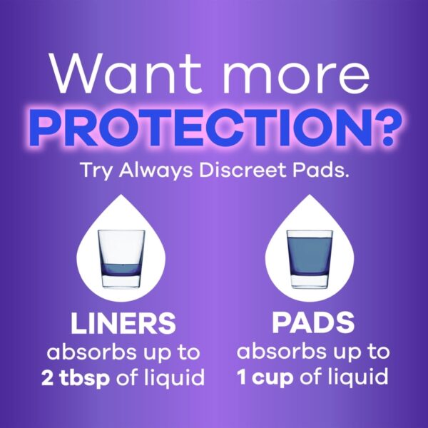 - Always Discreet Very Light Absorbency Liners are ideal for light leaks