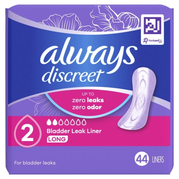 - Always Discreet Postpartum Incontinence Liners, Very Light Absorb, Long Length, 44 Count