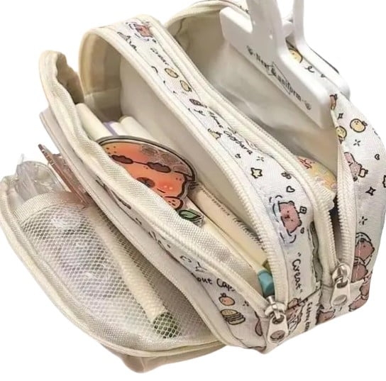 Anime Snoopy Inspired Zipper Pencil Case Organizer Pouch – Multi-Compartment Storage Bag with Mesh Pocket