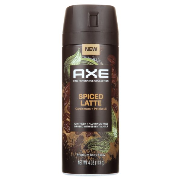 - Axe Fine Fragrance Men’s Deodorant Spray, Spiced Latte, Cardamom + Patchouli Aluminum Free, 4 oz
