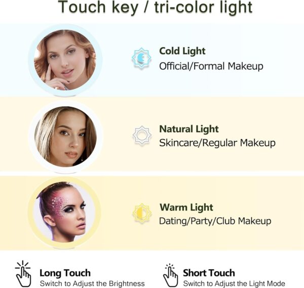 - 3 Color Lights: Comes with a touch switch and 3 different light settings with adjustable brightness for versatile use.