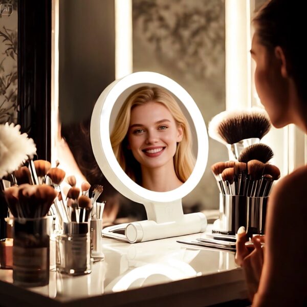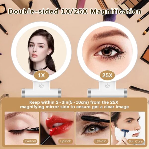 - 20X/1X magnifying double-sided mirror: The 20X mirror finish shows every detail of your makeup, while the 1X HD flat mirror finish reflects your overall make-up in a 1:1 ratio.