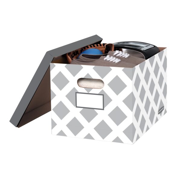 10 reviews for Bankers Box 3-Count Decorative, Letter/Legal File Box, Grey, Diamond Design with Grey Lid