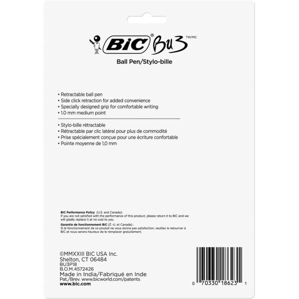 10 reviews for BIC BU3 Grip Ball Point Pen with Side Click Retraction, 0.7 mm, Black Ink, 18 Count, 18 Pack