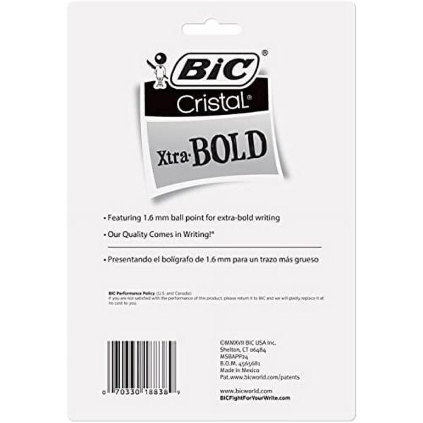 Be the first to review “BIC Cristal Xtra Bold Fashion Ballpoint Pen, Bold Point (1.6mm), Assorted Colors, 24-Count (MSBAPP241-A-AST)” Cancel reply