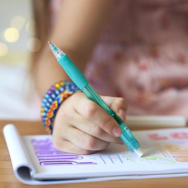 One 6-count pack of BIC Velocity Mechanical Pencil with Colored Leads, 6 Vibrant Colors,Add a splash of color to any page with 6 vibrant colors red, orange, pink, green, blue and purple mechanical pencils,Versatile 0.7 mm medium point mechanical pencil,BIC pencils with a durable eraser to fix mistakes fast,Velocity pencils with a soft, comfortable rubber grip so you can draw and create comfortably,Perfect for journaling, color coding notes, creative writing, drawing and coloring.,ACMI/AP certified Non-Toxic