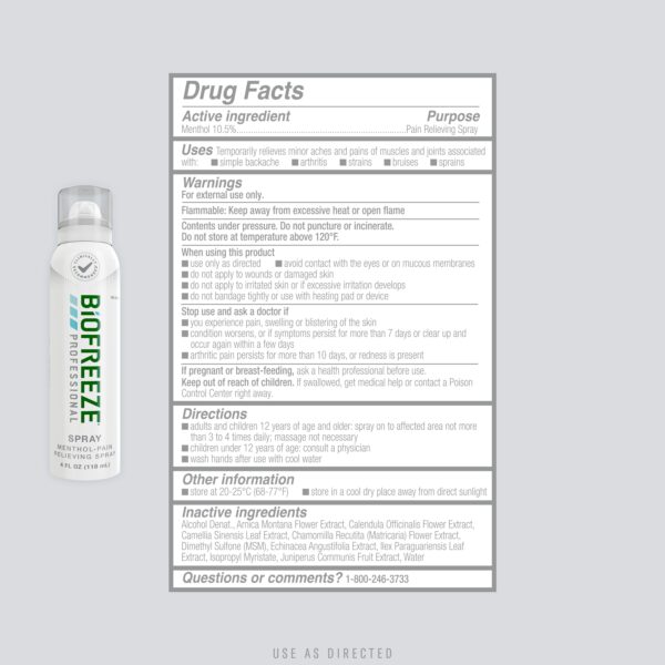 - Biofreeze Pain Relieving Spray, Colorless Formula, 4oz (Pack of 2)