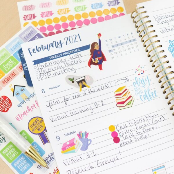 We are rapidly growing our planner sticker line and we are excited to announce our re-vamped Teacher Planner Stickers! These pair perfectly with our Teacher Planners, or any other planner you are using.