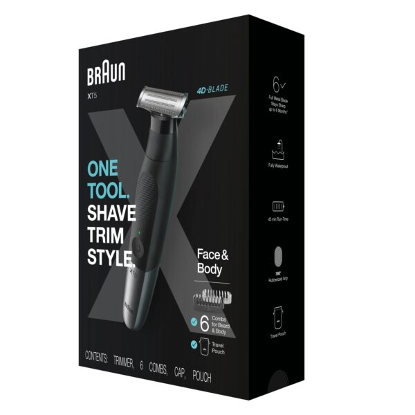 - Braun Series XT5 All-In-One Men’s Beard Trimmer and Body Groomer with 4x Face Combs, 2x Body Combs, Protector Cap, Travel Pouch and Smart Plug