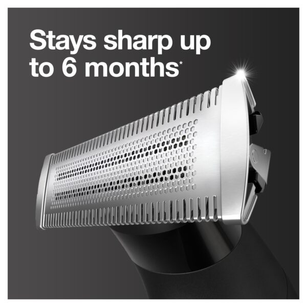 - Built to last longer, this beard shaver and body trimmer for men uses a stainless steel blade that stays sharp for up to 6 months*