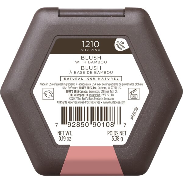 Glow beautifully and naturally, wherever you go. Burts Bees Blush in Shy Pink applies and blends easily and evenly. This 100% natural, lightweight mineral makeup features Bamboo, Honey and Vitamin E to nourish skin and enhance your cheeks natural glow for beautiful results, inside and out. Choose from three luminous shades that complement a variety of skin tones, from fair to dark. Shy Pink is a soft, light pink hue ideal for fair or medium skin tones. Burts Bees Blush is formulated without parabens, phthalates, SLS, petrolatum or synthetic fragrances. Its dermatologist tested and never tested on animals.