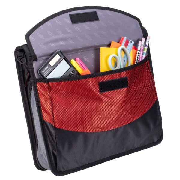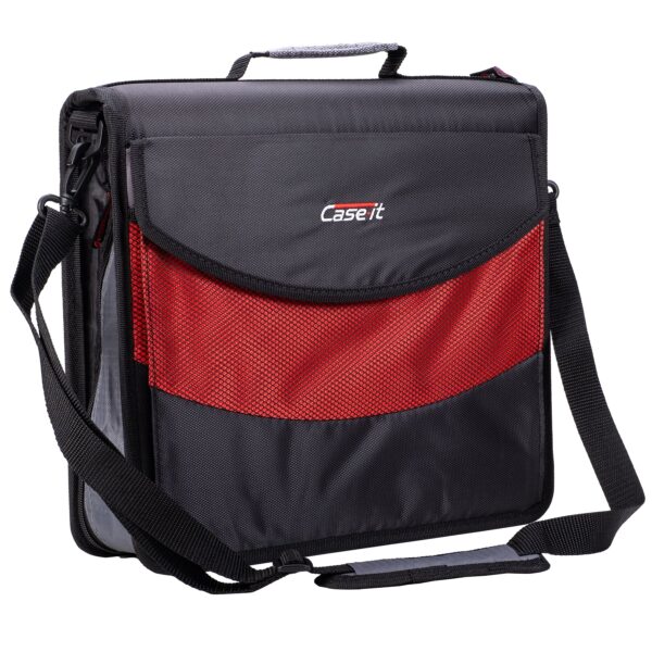 The Case•it DUAL-121-A zipper binder has two separate sets of rings, for a total storage space equivalent to a 3-inch binder. Use up to 600 sheets in all. Each set of rings is separated for easy organization and reference. We added in the “hold down pages” or keep all of your papers secure to their side like paperweights – they even provide extra storage for your writing tools! If you need more pockets, the front of the binder has a pocket that can hold a notebook for later use. This practical zipper binder closes completely to protect the contents from falling out or getting damaged. An additional pencil pouch comes included to store pens, pencils, and other essentials. Easily take your school work home with you because every DUAL-121-A comes with a shoulder strap and handle. Product Dimensions 13.1″ Height, 12.99″ Length, 3.10″ Depth. New Condition.