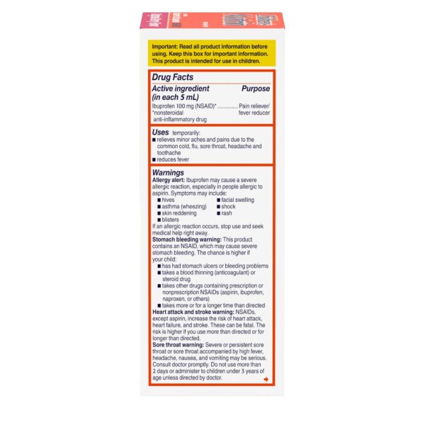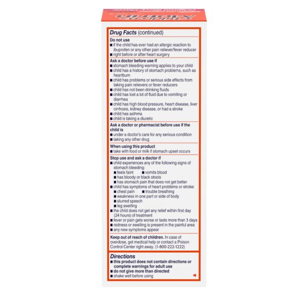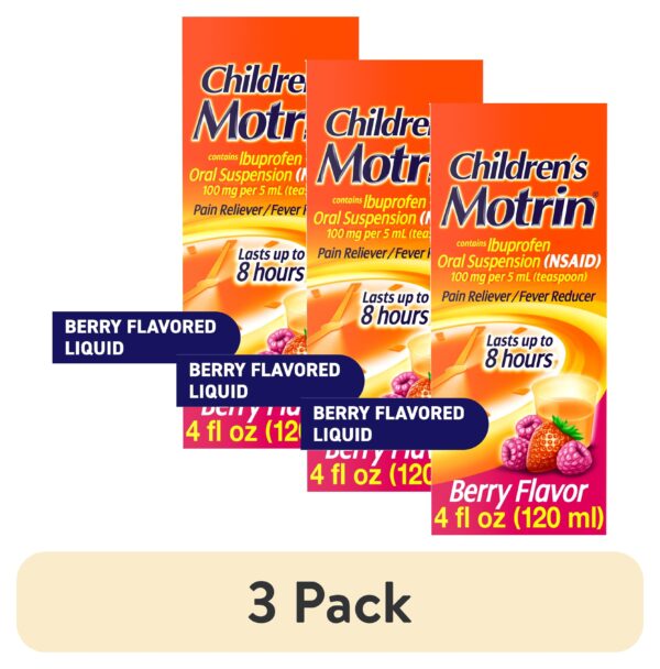 - Children’s Motrin Oral Suspension Liquid Medicine with Ibuprofen in a kid-friendly berry flavor