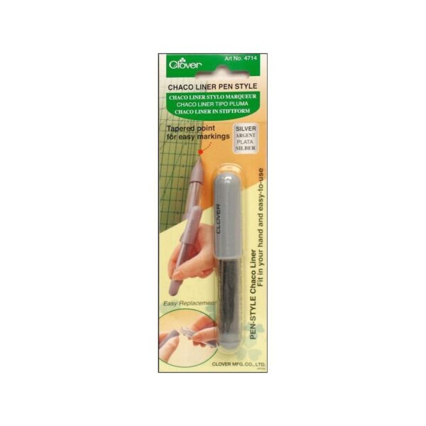 Showcase your creativity! This is perfect for a variety of crafts.Clover Chaco Liner Pen Style is a great way to mark your patterns and projects. The tapered point makes it easy for marking and it fits easily into your hand. The fine point permits accurate drawing of both straight lines and freehand curves, and also makes lines and marks more visible and is easy to use with a straight edge. They are easy to refill with screw on cartridges, sold separately. Silver