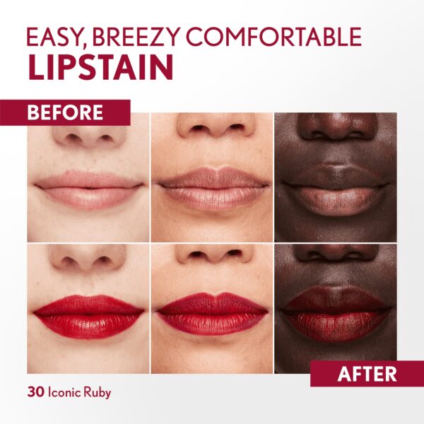 - Kiss-proof, Transfer-proof CoverGirl Lipstain that lasts for hours without the heavy feel.Weightless feel, up to 5X more lightweight than a Lipstick.