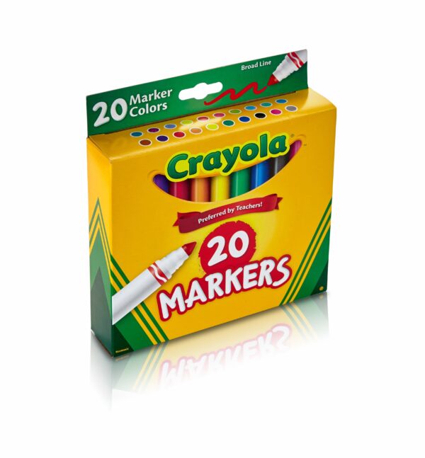 - CRAYOLA MARKERS: Features 20ct Broad Line Markers in classic colors.
