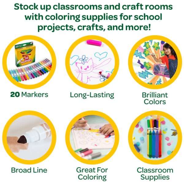 Crayola Broad Line Markers, 20 Ct Classic Colors, School Supplies for Teachers and Kids, Classroom Supplies