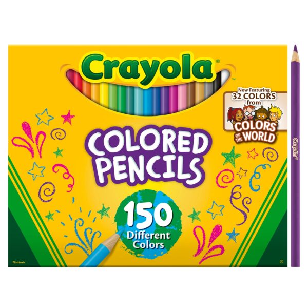 - CRAYOLA COLORED PENCIL SET: This Crayola Colored Pencil Set features 150 coloring pencils with 120 classic and vivid colors, as well as 30 Colors of the World Colored Pencils.