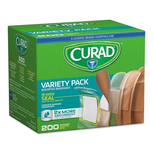 Protect wounds from dirt and germs with this Curad Variety Pack 200-count bandages.