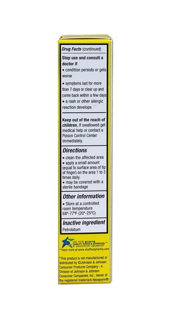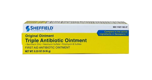 Dr. Sheffield Triple Antibiotic Ointment should be a staple in your first aid kit. Perfect for treating minor wounds, scrapes, burns and flare ups. Apply Dr. Sheffield Triple Antibiotic Ointment immediately to help speed the healing process while providing protection against possible infection. This triple antibiotic cream contains the active ingredients bacitracin, neomycin and polymyxin that will assist in getting your skin back to normal as quickly as possible. It also contains petrolatum for added protection and moisture support. This first aid antibiotic treatment is easy to apply and comes in a 0.33-oz tube. Apply it to affected areas several times a day, as prescribed by your physician, to ensure rapid healing.