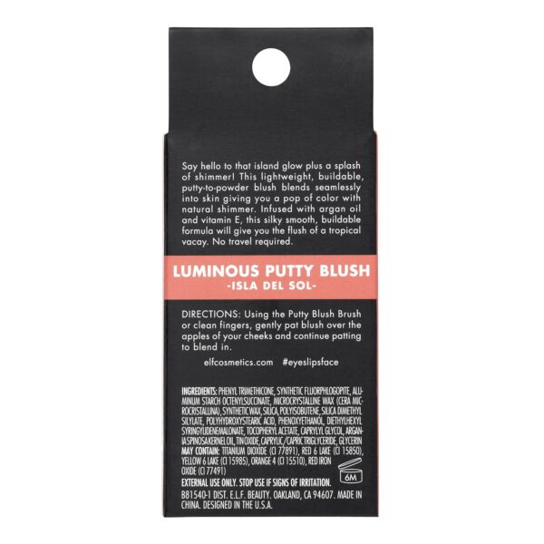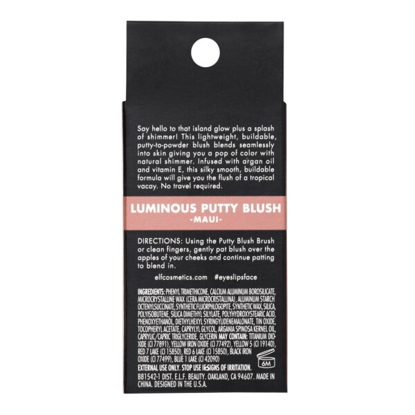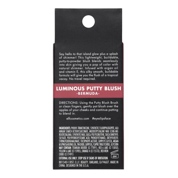 - Your favorite e.l.f. Putty Blush, now with a shimmery finish for a glowing complexion