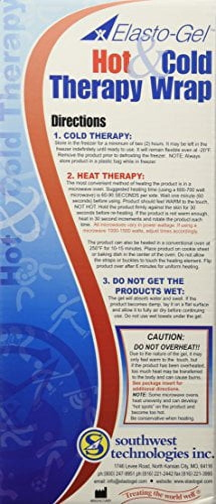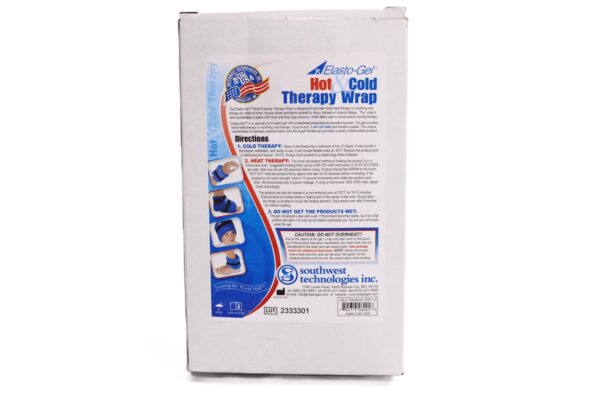 Elasto gel 6×30″ multi purpose wrap is ideal for smaller body parts such as knee, elbow, ankle, and neck. Provides hot/cold therapy to help with pain relief associated with sprains, strains, swelling, bruising, and injuries. Soft stretchy cover that is durable and comfortable against the skin. ; Store in the freezer/refrigerator for cold therapy; Heat up in the microwave with increments of 30 seconds at a time ; Gel will not harden or dry out ; Gel will not leak if under pressure ; Latex free