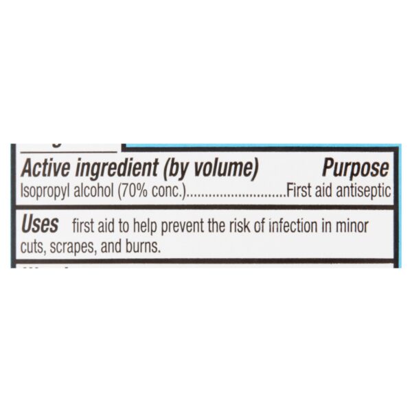 - Active ingredient: Isopropyl alcohol (70% conc) – First aid liquid antiseptic