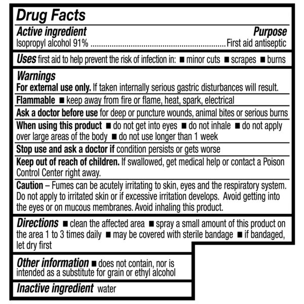 - Equate 91% Isopropyl Alcohol First Aid Antiseptic, Topical Solution Spray, 10 fl oz