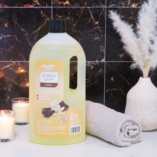 Enhance your bath time experience with our Equate Vanilla Bubble Bath for adults, seniors and teens. There are not many things more relaxing than a foamy bubble bath, and a steamy, hot bath may help ease sore muscles, reduce chronic pain, and help you get a better night’s rest. Our unique formula comes in a soothing vanilla scent to help you wind down for the day. This foaming bath comes in a convenient 64-fluid ounce bottle and transforms your bath into a luxurious spa soaking experience with gentle, long-lasting foam to help you relax and unwind. Simply pour one to two capfuls directly into running water, bask in the fragrant vanilla scent, and watch the foamy bubbles form. Treat yourself to some well-deserved rest and relaxation and transform bath time into spa time with Equate Vanilla Bubble Bath.