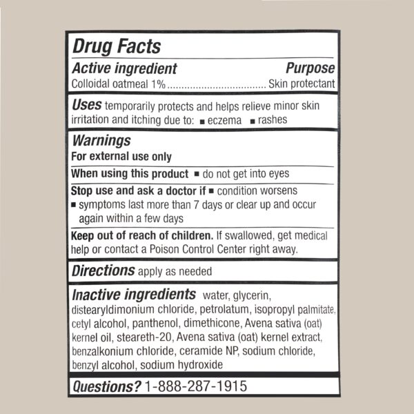 - Contains colloidal oatmeal and ceramides
