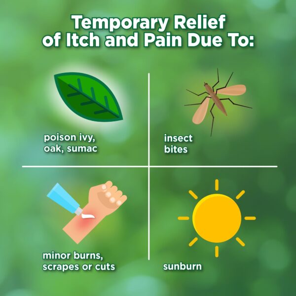 - Fast Relief: Provides fast relief for most outdoor itches due to bug bites, sunburn and rashes from poison ivy, poison oak or poison sumac