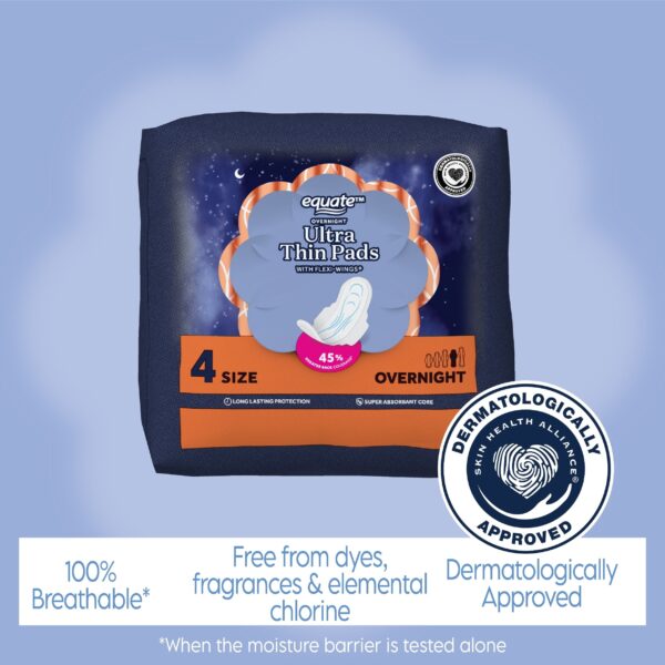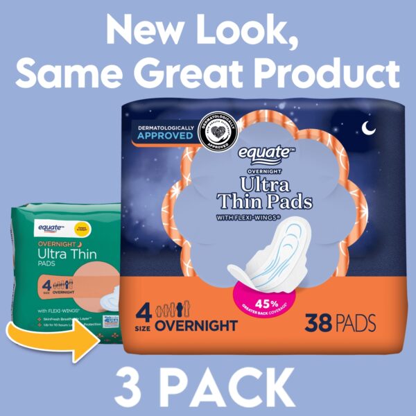 - Equate Ultra Thin Pads with Wings, Unscented, Overnight, Size 4 (38 Count)