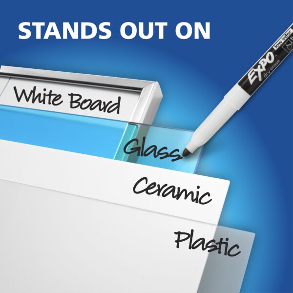 Capture ideas, share information, and organize life with vivid EXPO Dry Erase Markers! Now more vibrant than ever, this collection of EXPO markers helps everything come across clearly—from big ideas to fine details. The presentation markers are made for the whiteboard and beyond with ink that pops on glass, acrylic, and other clear, non-porous surfaces. They’re perfect for planning, presentations, lessons, calendars, home organization, and more! Plus, the wide range of colors of these whiteboard markers add versatility and personalization to any of your marking; you’ll be able to accent with a colorful doodle or sketch if you’re a teacher or parent! With an EXPO eraser or dry cloth, the ink erases cleanly and easily, so there’s little pause in any brainstorm session. And the low odor markers are great for classrooms, offices, and homes!