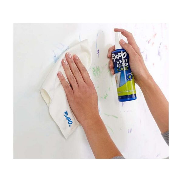 - Simply spray and wipe with a soft cloth or Expo eraser