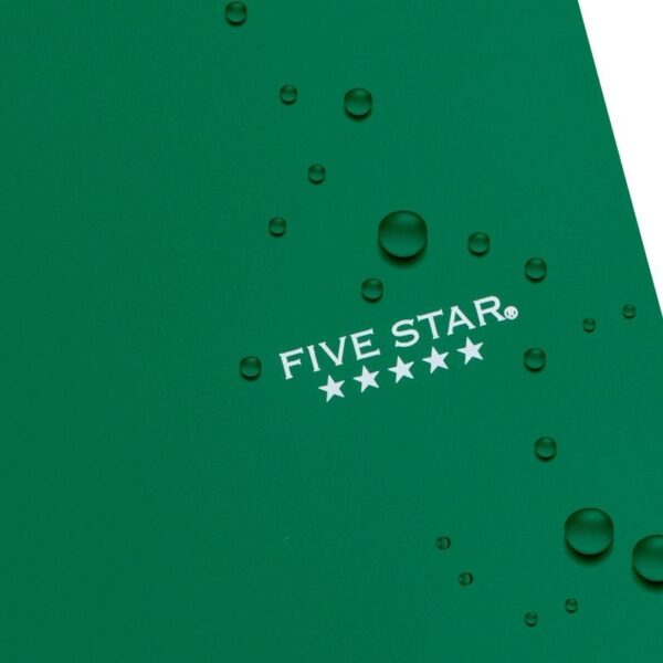 LASTS ALL YEAR. GUARANTEED! Guarantee is valid for one year from purchase date. Does not cover misuse. Scan and study your notes with the Five Star® Study App 1 subject notebook with 100 double-sided, wide ruled sheets Perforated sheets fight ink bleed Sheets measure 8″ x 10 1/2″ when torn out Tough pockets help prevent tears Durable plastic water-resistant front cover, Spiral Lock® wire binding Made with SFI® certified paper. Color chosen for you.