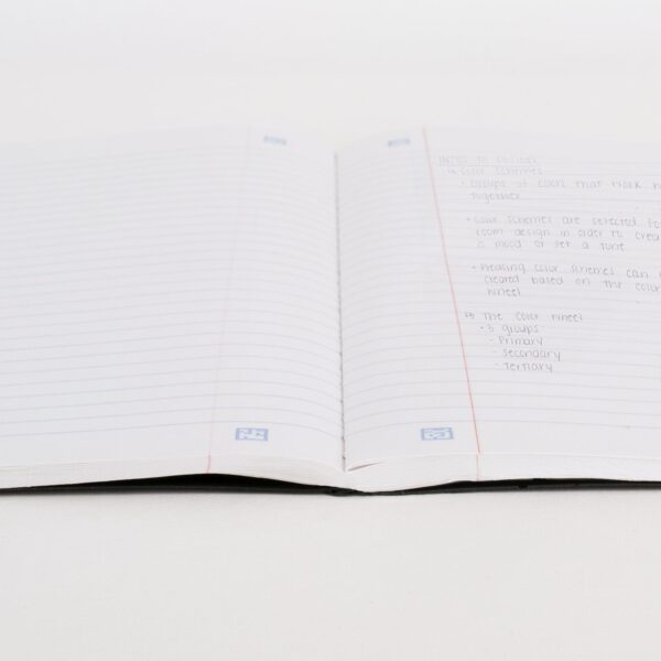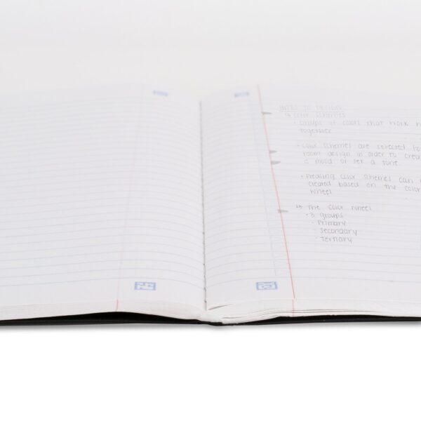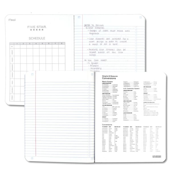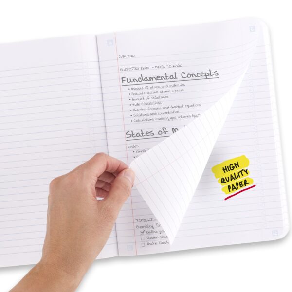 - College ruled sheets are securely sewn in, and the durable one-piece plastic cover helps protect notes all year long. Cover lies flat when open for easy notetaking.