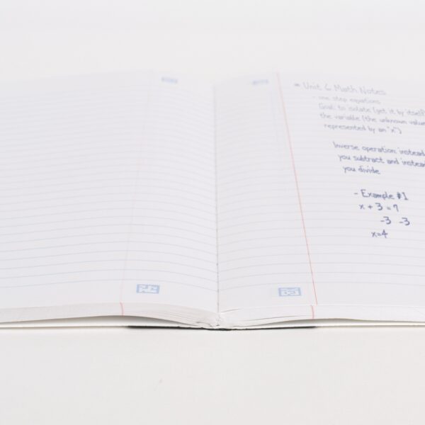 - Ruled sheets are securely sewn in. The durable one-piece plastic cover helps protect notes all year long. Cover lies flat when open for easy notetaking.