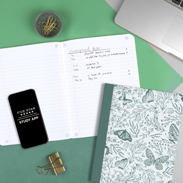 Five Star Down to Earth Composition Book Plus Study App, Wide Ruled, 80 Sheets, 7.5″ x 9.75″, Butterfly Blues