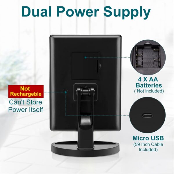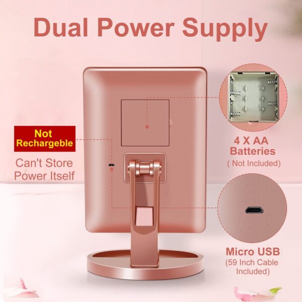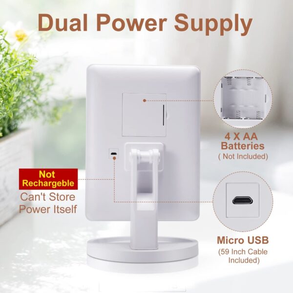 - The vanity mirror with lights is powered by a USB cable (included) or 4 AAA batteries (not included), providing you with the flexibility to use it in different locations.
