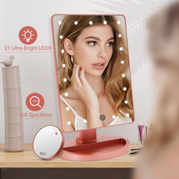 - Enjoy natural bright lighting with 21 LED lights that allow you to apply makeup in various environments, from daytime to evening, at home or in the office, without any dazzling effect that could strain your eyes.