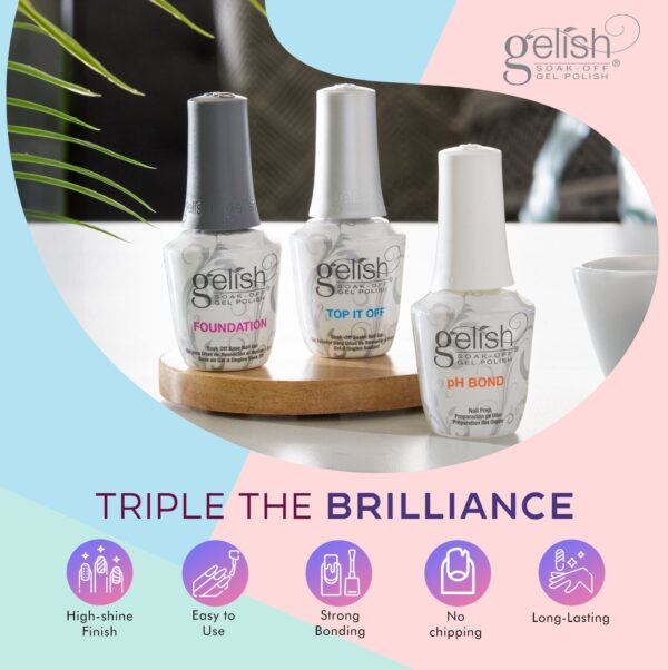 - Uses Gelish patented technology for easy soak off in 10-15 minutes