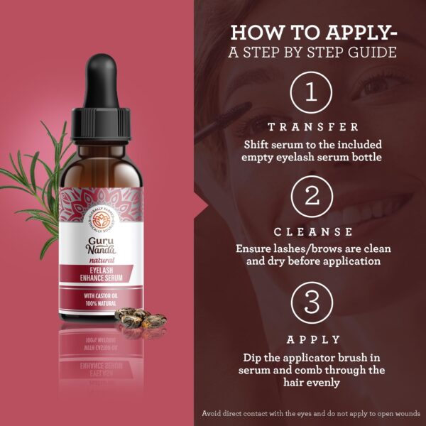- 100% NATURAL: GuruNanda Eyelash Serum is a blend of natural ingredients, including rosemary and castor oil, designed to enhance lash thickness, promote hair growth, and deeply nourish—ideal for eyelash, eyebrow, and beard care.